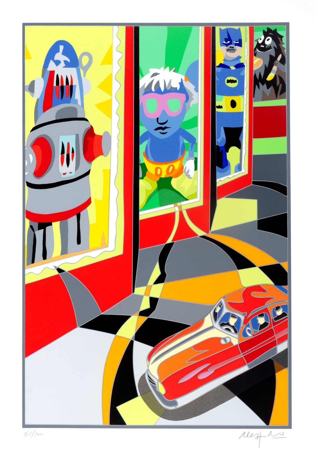 Ugo Nespolo (Mosso 1941) - Robots e supereroi
