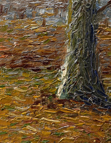 Umberto Boccioni "Paesaggio con alberi" 1908 olio su tela cm 27x16 Firmato in ba