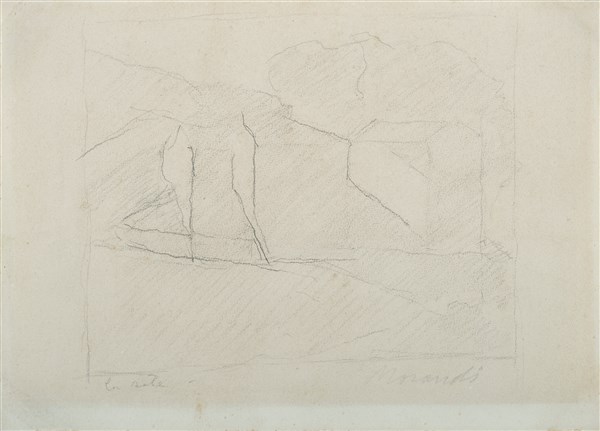 Giorgio Morandi "Paesaggio" 1961 matita su carta cm 23x32 Firmato in basso a des