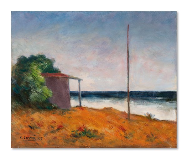 Carlo Carrà "Marina a Forte dei Marmi" 1955 olio su tela cm 50x60,5 Firmato e da