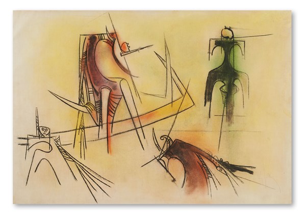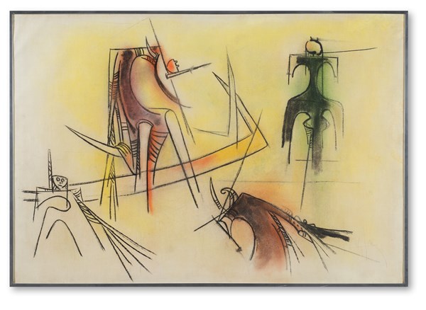 Wifredo Lam "Composition" 1957 circa matita e pastello su carta applicata su tel