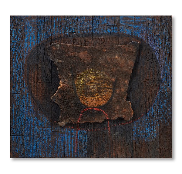 Roberto Crippa "Senza titolo" 1958 tecnica mista e sughero su tavola cm 74,5x84,
