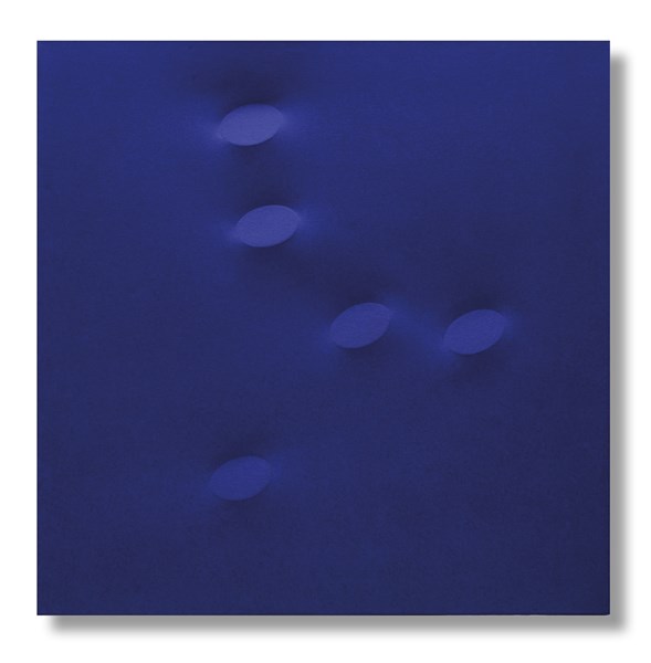 Lot 66 | Turi Simeti "5 ovali blu" 2005 acrilico su tela sagomata cm 100x100 Firmato e da