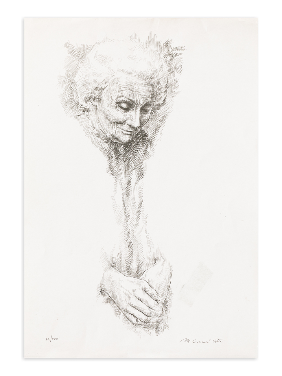 Firma e numerazione (Esemplare 74/150) a matita al fronte