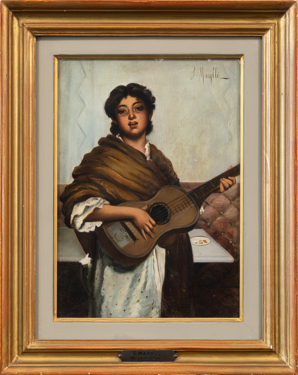 Previous Lot 170 Next Studio d'Arte Borromeo - Via Piave 3/B, 20030 Senago ASTA N.119 - PAINTINGS, PRINTS & MULTIPLES Sessione Unica Friday 13 May 2022 hours 10:30 (UTC +01:00) S. MARJLLI - Cantastorie S. MARJLLICantastorieOlio su telacm 34x24Firma al fronte
