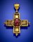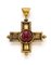 Pendente/broche in oro giallo a croce greca con al centro scarabeo intagliato i