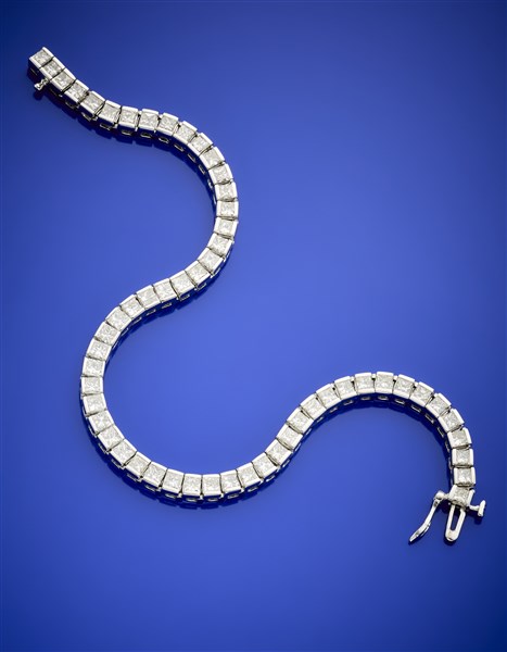 Lot 569 | Bracciale tennis in oro bianco 585/1000 con diamanti carré per complessivi ct.