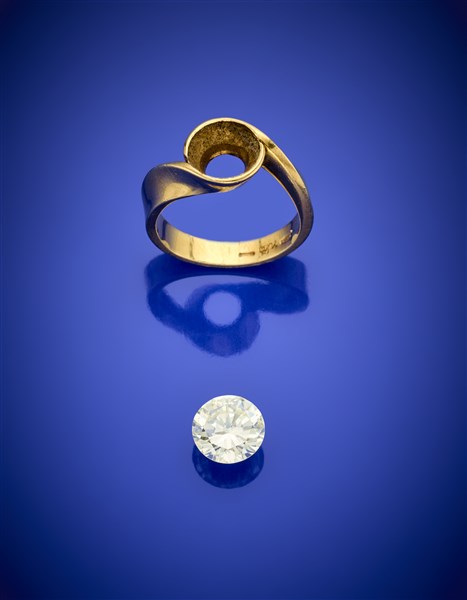 Lot 571 | Anello in oro giallo con diamante rotondo di ct. 1,75, g 5,45 circa misura 9/49