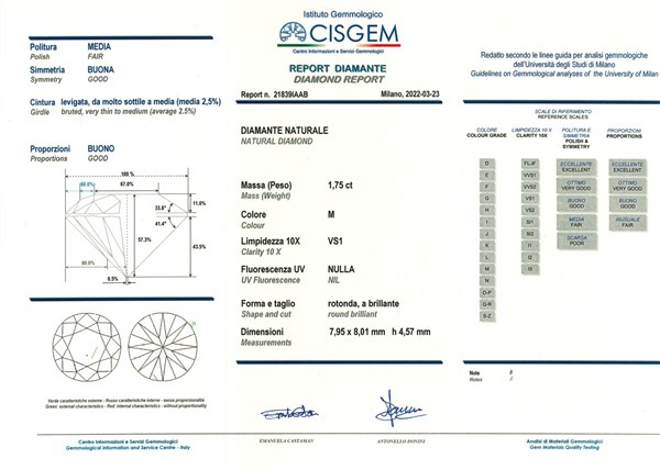 Appended diamond report CISGEM n. 21839IAAB 23/03/2022, Milano