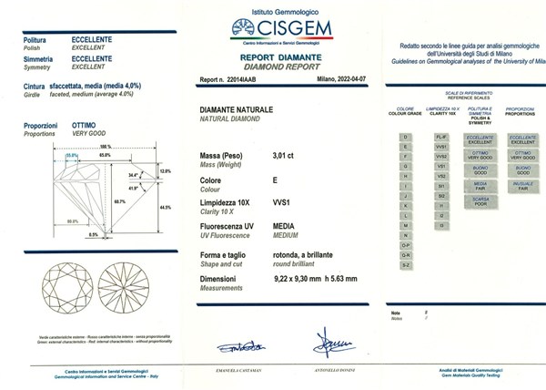 Accompagnato da diamond report CISGEM n. 22014IAAB del 7/04/2022, Milano