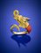 Anello in oro giallo in parte satinato e corallo arancione a guisa di testa di