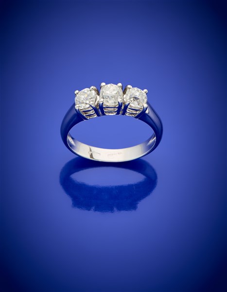 Lot 634 | Anello trilogy in oro bianco e diamanti old mine per complessivi ct. 1,30 circa
