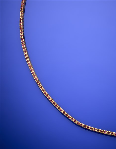 Bracciale tennis in oro giallo con rubini per complessivi ct. 2,00 circa, g 10,