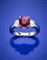Lot 682 | Anello in platino con rubino a cuscino di ct. 2,01 circa e due diamanti lateral