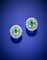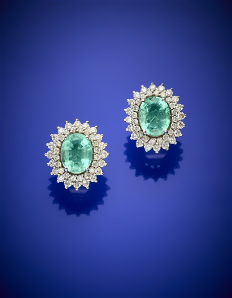 Orecchini in oro bianco, diamanti e due berilli verdi per complessivi ct. 3,20