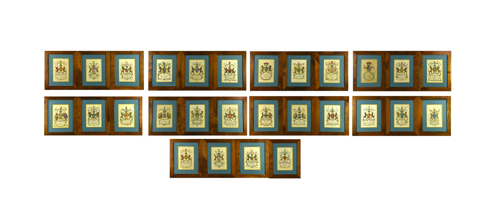 Scuola del XVIII secolo STEMMI ARALDICI DI FAMIGLIE INGLESI stampe a colori...