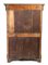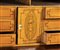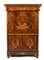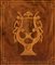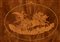 impiallacciato in legno di mogano su struttura in rovere, tutti gli intarsi del mobile sono in legno di bosso ed altri legno di frutto. Su entrambi i fianchi sono presenti disegni ad intarsio rappresentanti vasi ad urna in stile neoclassico nel mezzo e da una coppia di angeli che sorreggono un corona d’alloro nella parte alta Sulla parte frontale del mobile è presente un cassetto nella parte alta abbellito con un intarsio floreale, sulla parte esterna della calatoia è stato intarsiato Apollo e conduce il carro del sole, nella parte inferiore, sui due sportelli, sono intarsiate delle lire, legate al mito del dio del sole. Il box interno è composto da sei cassetti ed tabernacolo chiuso con porta tutti in acero intarsiato. Dimensioni 158 x 106 x 49 cm. Stato di conservazione: *** discreto.