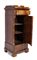 impiallacciato in mogano e struttura in pino svedese. Semplice e lineare ha un cassetto nella parte alta, uno sportello centrale e di forma tondeggiante e all’interno si trovano due ripiani. Dimensioni 133 x 58 x 48 cm. Stato di conservazione: *** discreto.