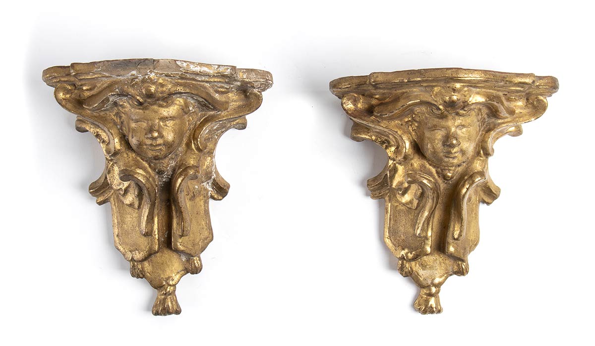 Coppia di mensole italiane in gesso dorato - XIX secolo