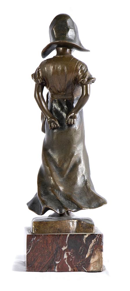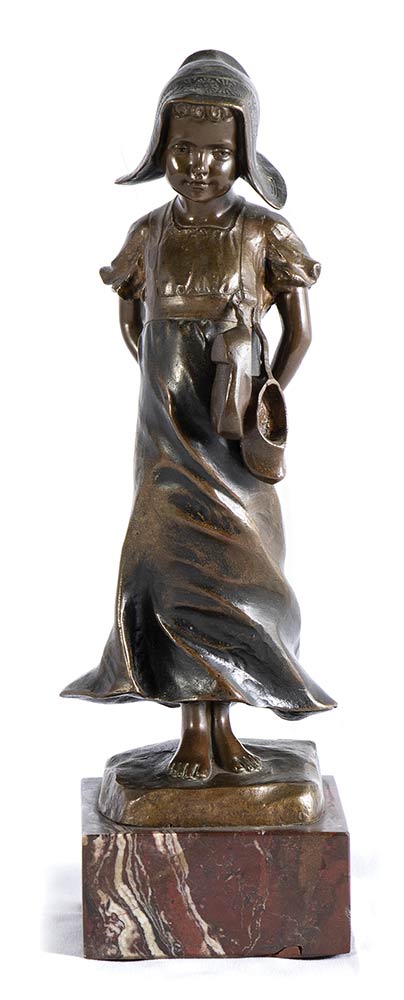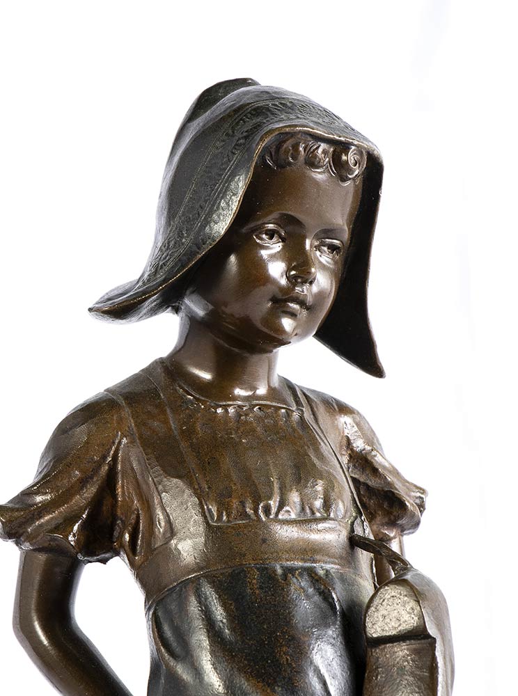 Scultura francese in bronzo raffigurante pastorella olandese - XX secolo