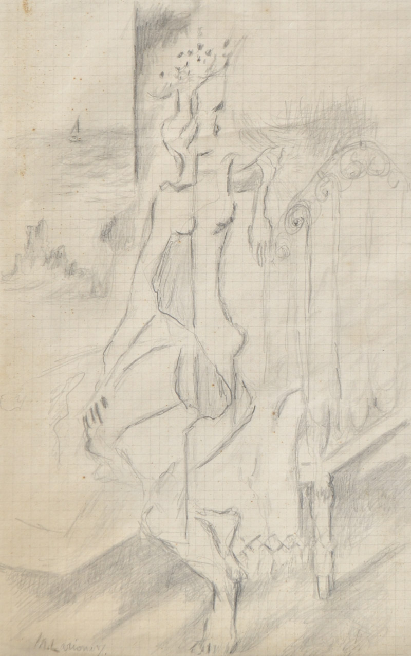 Michail Larianov (Tiraspol 1881 - Fontenay-aux-Roses 1964) Ragazza davanti alla finestra, 1920 ca.;Matita su carta a quadretti, 29,2 x 18,4 cm