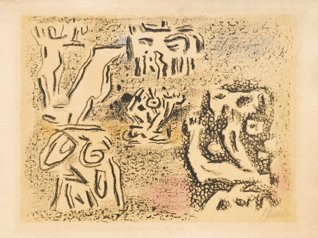Willi Baumeister (Stuttgart/Stoccarda 1889 - 1955) Senza titolo (col mostro Chumbaba), 1946;Litografia acquerellata, 25 x 33 cm (immagine), 30,5 x 41,8 cm (foglio), carta leggermente brunita