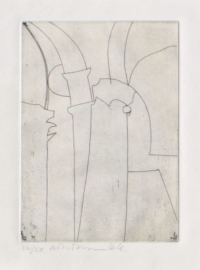 Ben Nicholson (Denham 1894 - Hamstead London 1982) Urbino Cattedrale, 1966;Acquatinta su carta, 21 x 14,8 cm, foglio 29,5 x 24 cm, timbro a secco "Galleria Prandi Reggio Emilia"
