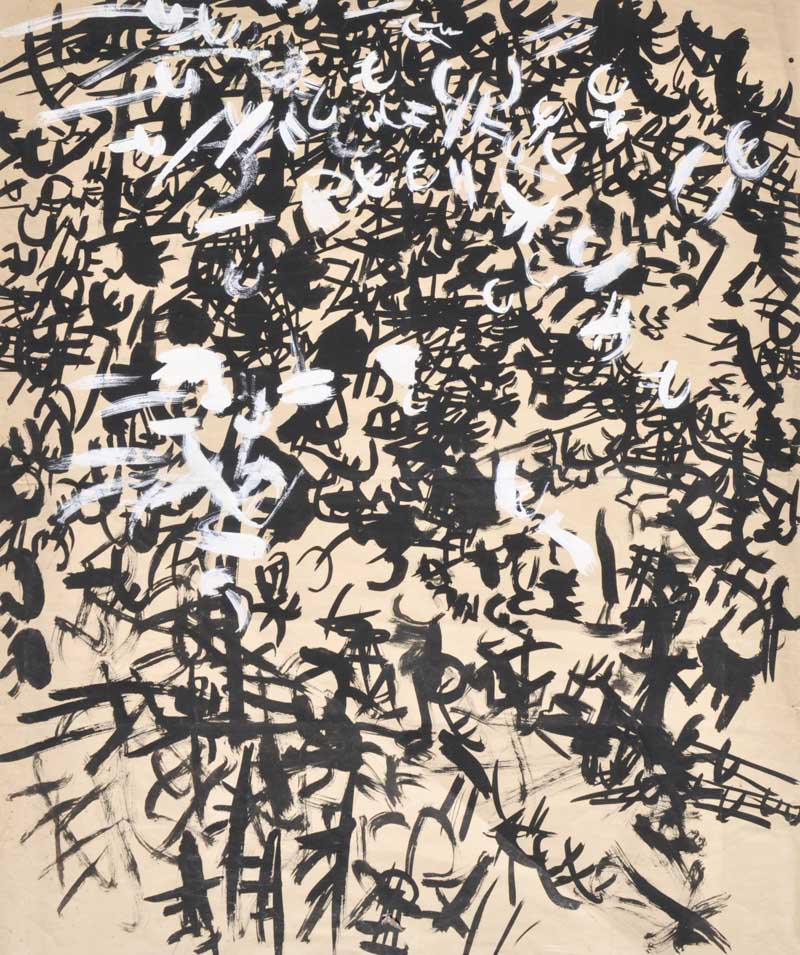 Antonio Sanfilippo (Partanna 1923 - Roma 1980) Ohne Titel, 1956;Tempera su carta, 70,5 x 59,5 cm, al retro timbro di autentica di Antonella Sanfilippo datato "Roma 10. 7. 90". Piccoli restauri a due strappetti della carta al centro a sx