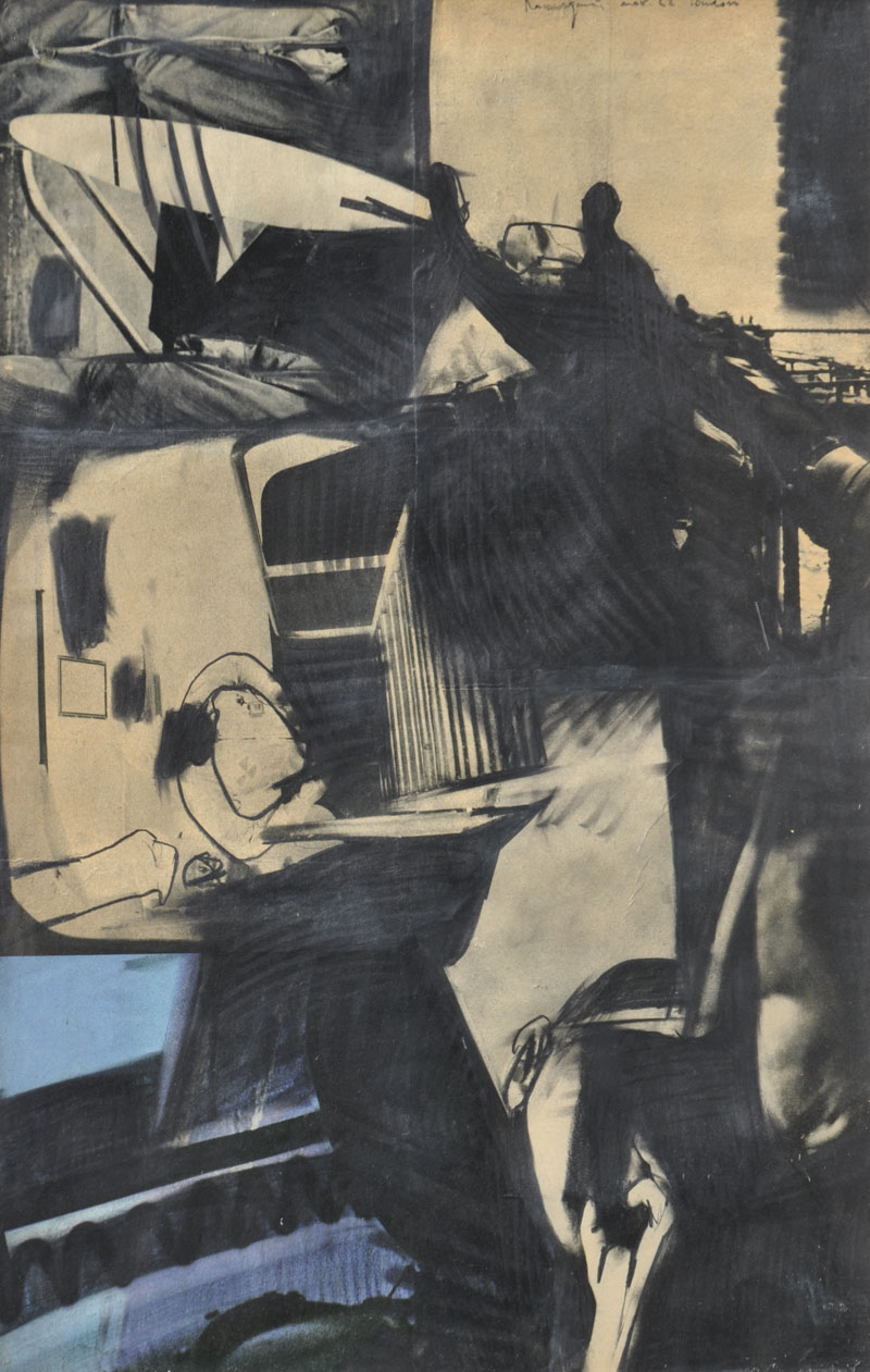 Collage pastello su carta, 70 x 49 cm, al retro etichetta "Galleria d'arte Moderna Il Punto Torino", lieve macchia in basso a sx