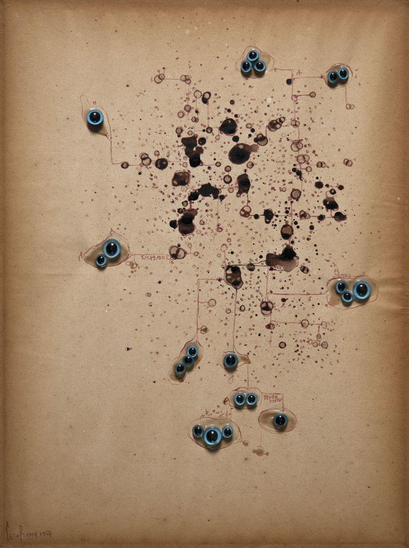 Carol Rama (Turin/Torino 1918 - 2015) Senza titolo, 1967;Inchiostro, colla e vetri tassidermici su carta, 46 x 34,5 cm, carta lievemente brunita