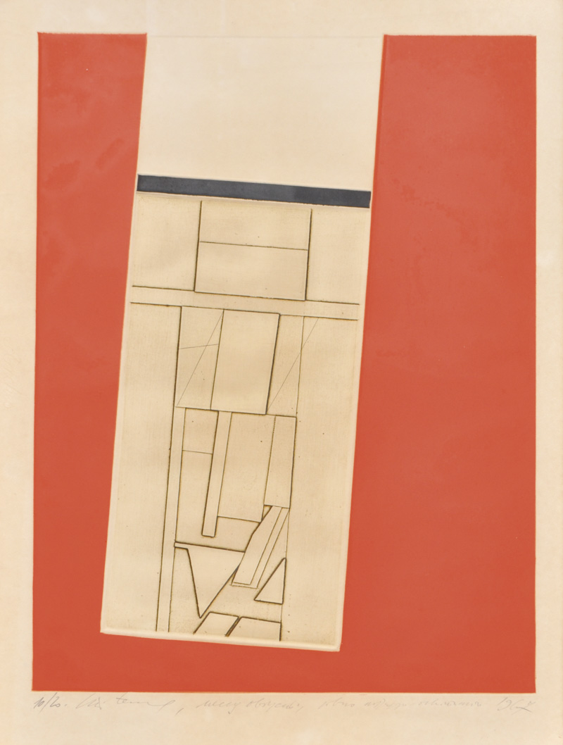 Stojan Celic (1925 - Belgrad/Belgrado 1992) August, 1967;Acquatinta a col. su carta, 63,5 x 48,5 cm, foglio 75 x 55,5 cm, timbro a secchio "Arches"