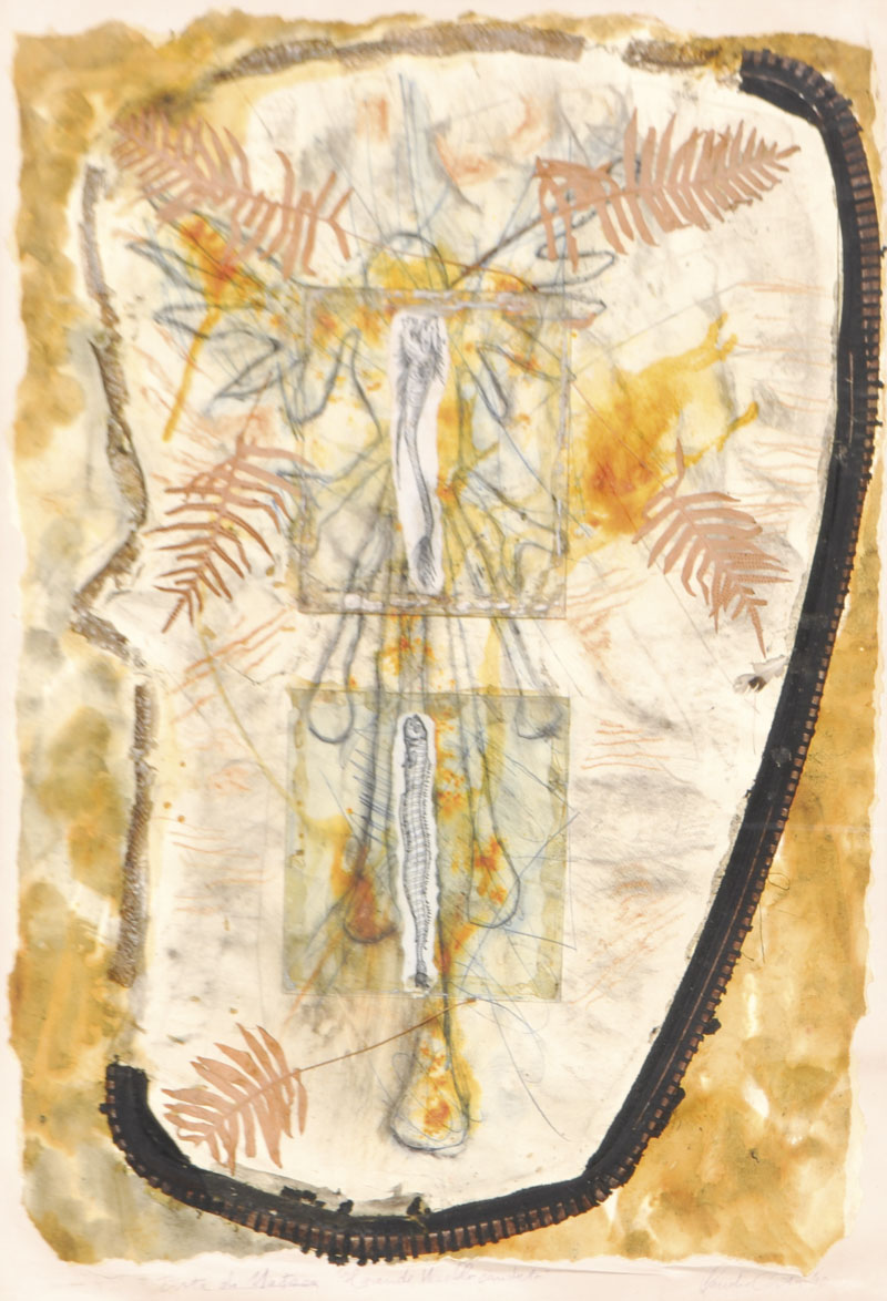 Claudio Costa (Tirana 1942 - Genua/Genova 1995) Il grande uccello - Nazca, um 1990;Tecnica mista su carta, 100 x 70 cm, in cornice