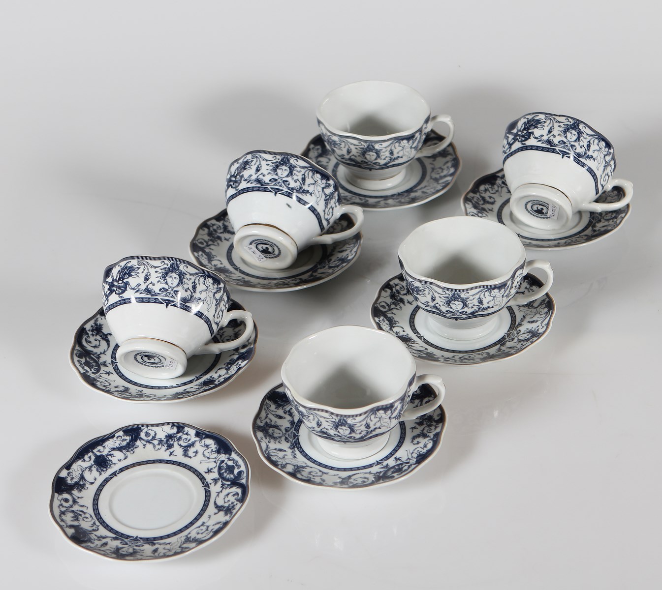 Servizio da the in porcellana Belle Epoque. Porcellana. . Servizio composto da n. 6 tazze e n. 7 piattini.