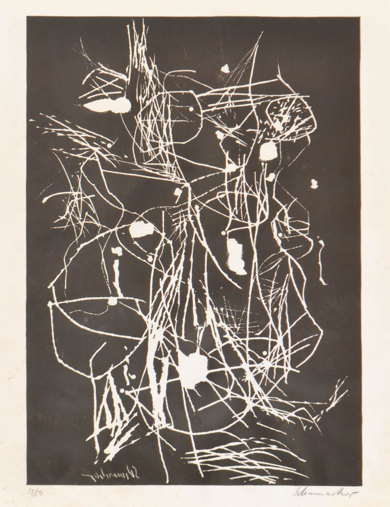 Emil Schumacher (Hagen 1912 / Sant Josep de sa Talaia 1999) Senza titolo;Litografia in b/n su carta, 64,3 x 50,5 cm