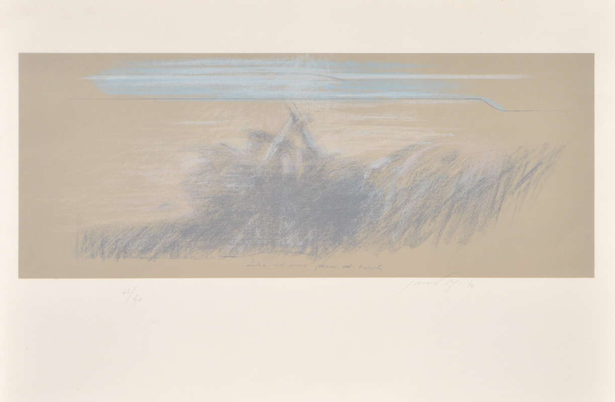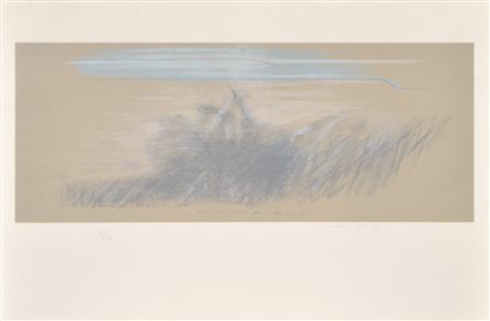 Pietro Guccione (Scicli 1935 - Modica 2018) Ombre sul muro prima del tramonto, 1977;Litografia a col. su carta, 50 x 70 cm