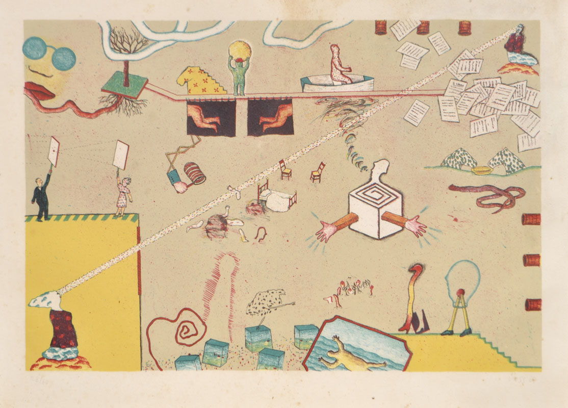 Jan Voss (Hamburg/Amburgo 1936) Senza titolo, 1967;Litografia a col. su carta, 49 x 65 cm