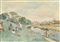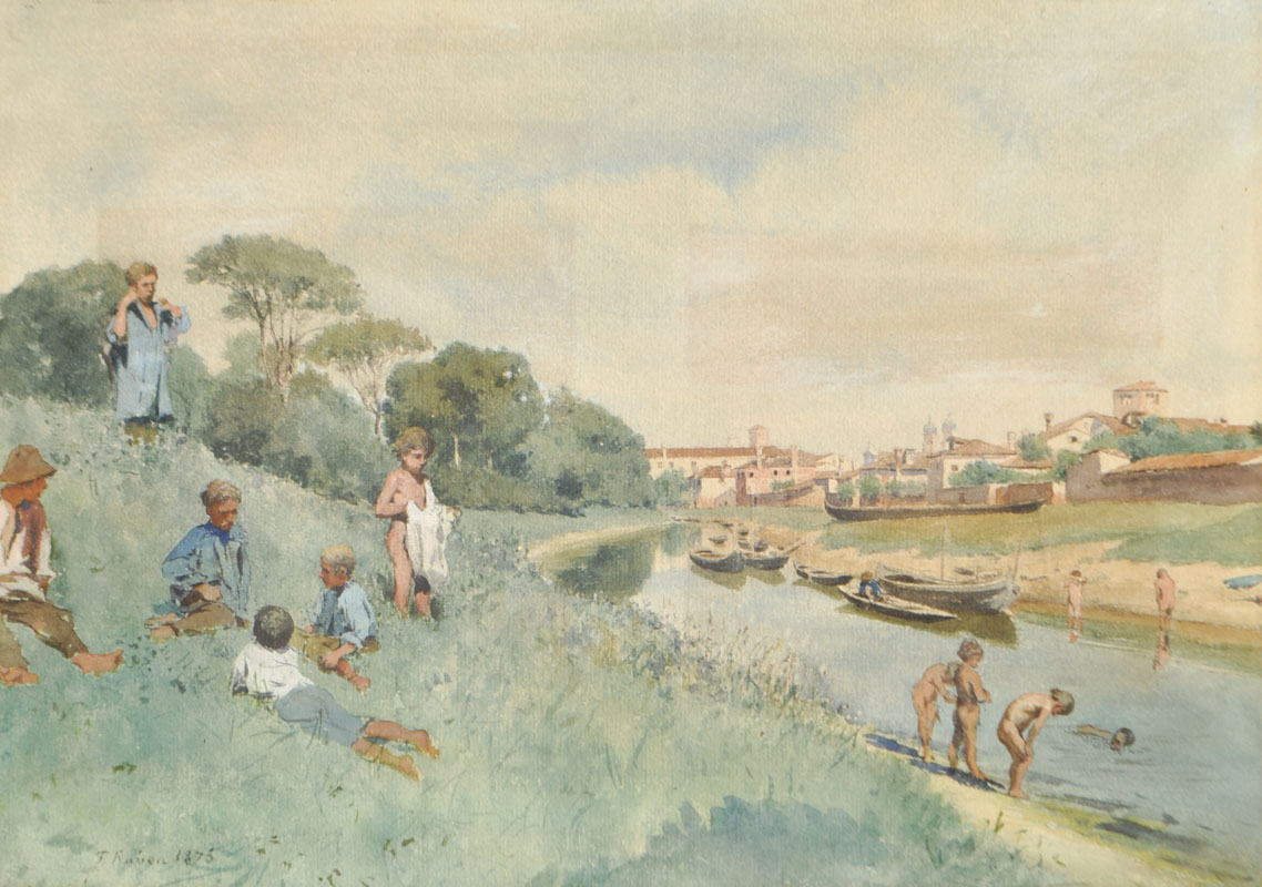 Franz Leo Ruben (Prag/Praga 1842 – München/Monaco di Baviera 1920) Bambini che fanno il bagno nei dintorni di Padova, 1874;Acquerello, 32 x 44 cm, in cornice