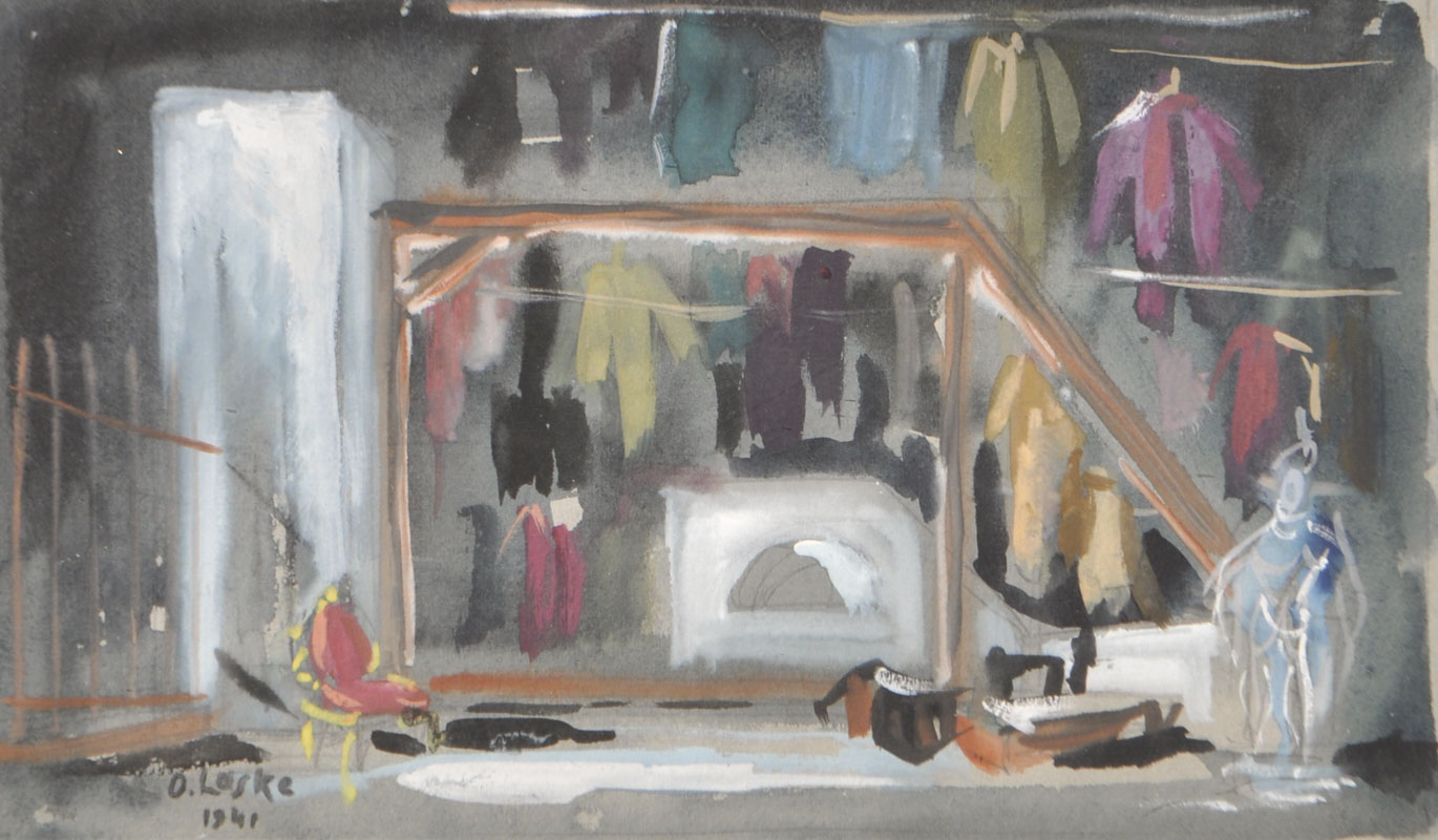 Oskar Laske (Czernowitz, Bukowina 1874 / Wien/Vienna 1951) Palcoscenico teatrale, 1941;Guazzo, 18,5 x 32 cm, in cornice