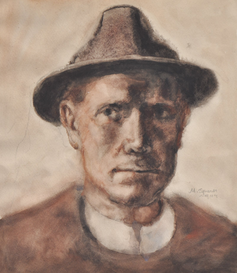 Max Sparer (Söll, Tramin/Termeno 1886 - Bozen/Bolzano 1968) Contadino altoatesino, 1944;Acquerello, 34 x 31 cm, in cornice