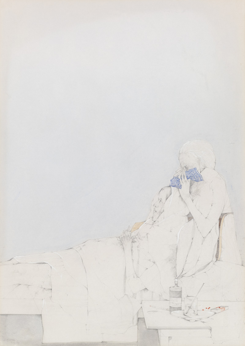 Karl Plattner (Mals/Malles 1919 - Mailand/ Milano 1986) Mia madre, 1973/74;Tecnica mista su carta su tavola, 98 x 69 cm, in cornice