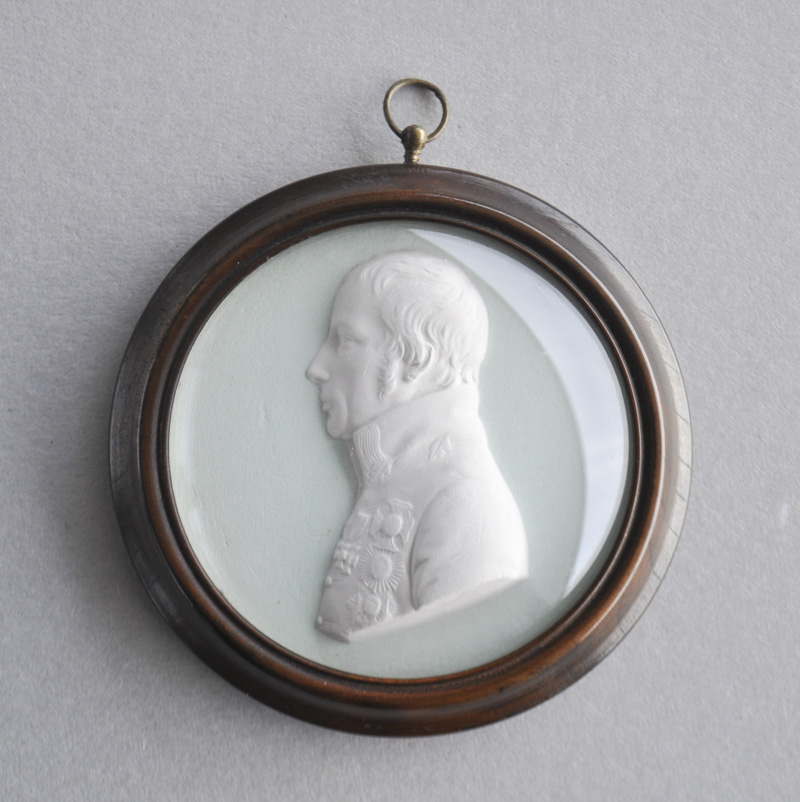 Leonhard Posch Umkreis/cerchia (Fügen im Zillertal 1750 – Berlin/Berlino 1831) Ritratto dell‘imperatore Francesco I d‘Austria;Miniatura in gesso, colorata, d 7,5 cm, in cornice