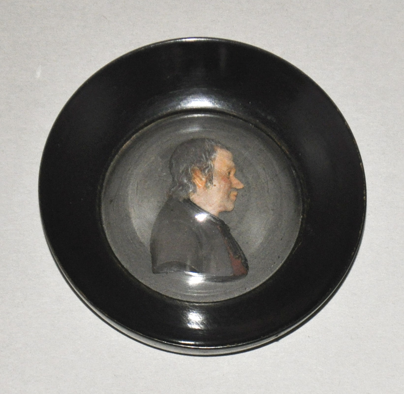 Anton Kob nach/da Johann Baptist Pendl (Partschins/Parcines 1822 – Bozen/Bolzano 1895) Ritratto Sylvester Pendl, contadino nella valle Zillertal;Miniatura in gesso, colorata, d 6 cm, in cornice