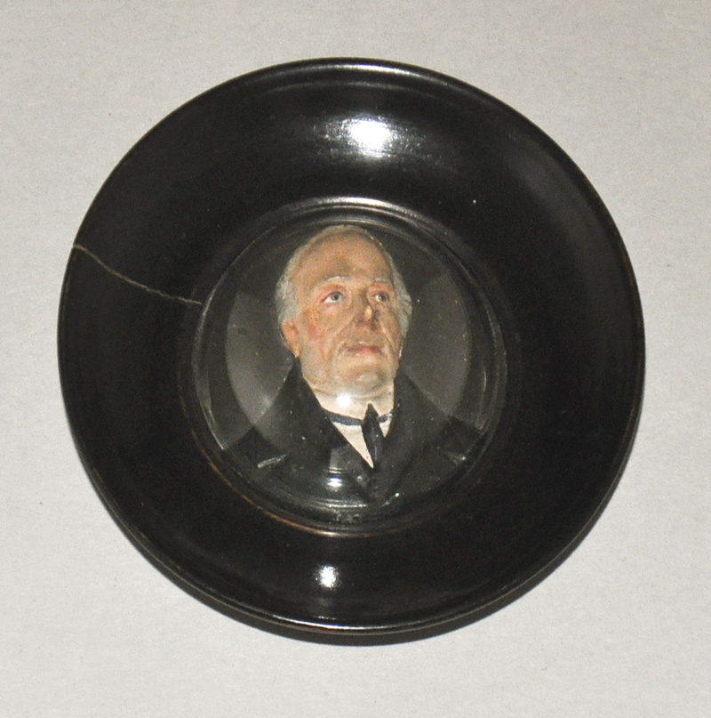 Anton Kob (Partschins/Parcines 1822 – Bozen/Bolzano 1895) Ritratto dello scultore Johann Baptist Pendl, Merano;Miniatura in gesso, colorata, d 5 cm, in cornice