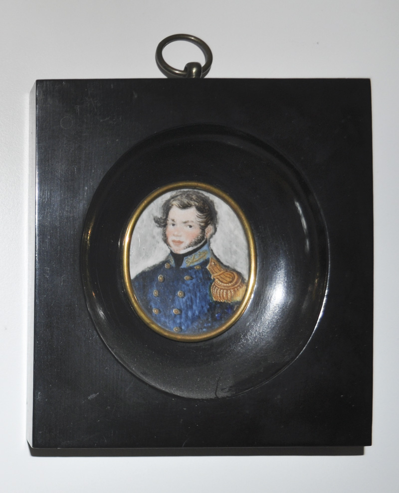 Miniaturmaler um 1800/Pittore di miniature del 1800 ca. Ritratto di un ufficiale, San Valentino;Acquerello, altezza 5,5 cm, in cornice