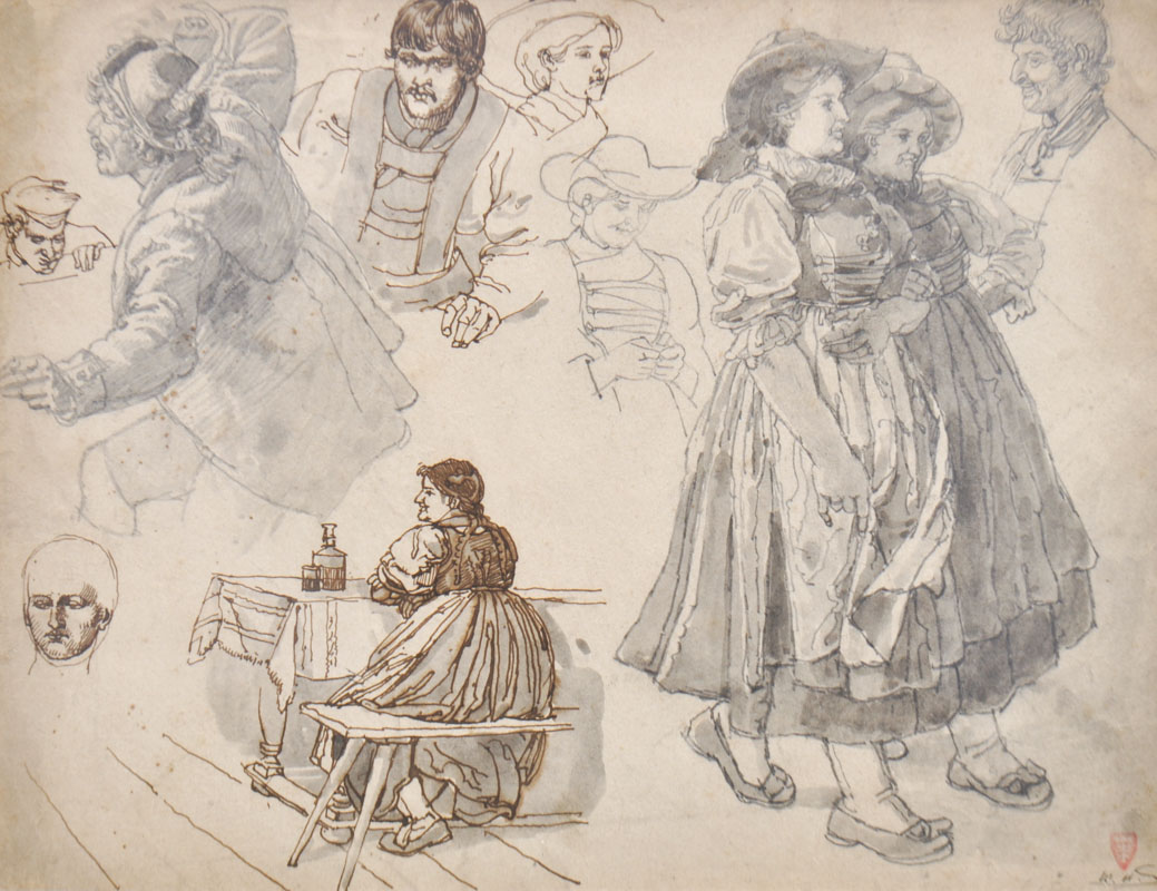 Monogrammist K. H. S, Mitte 19. Jh. Tipi popolari tirolesi;China, 16 x 20,5 cm, in cornice