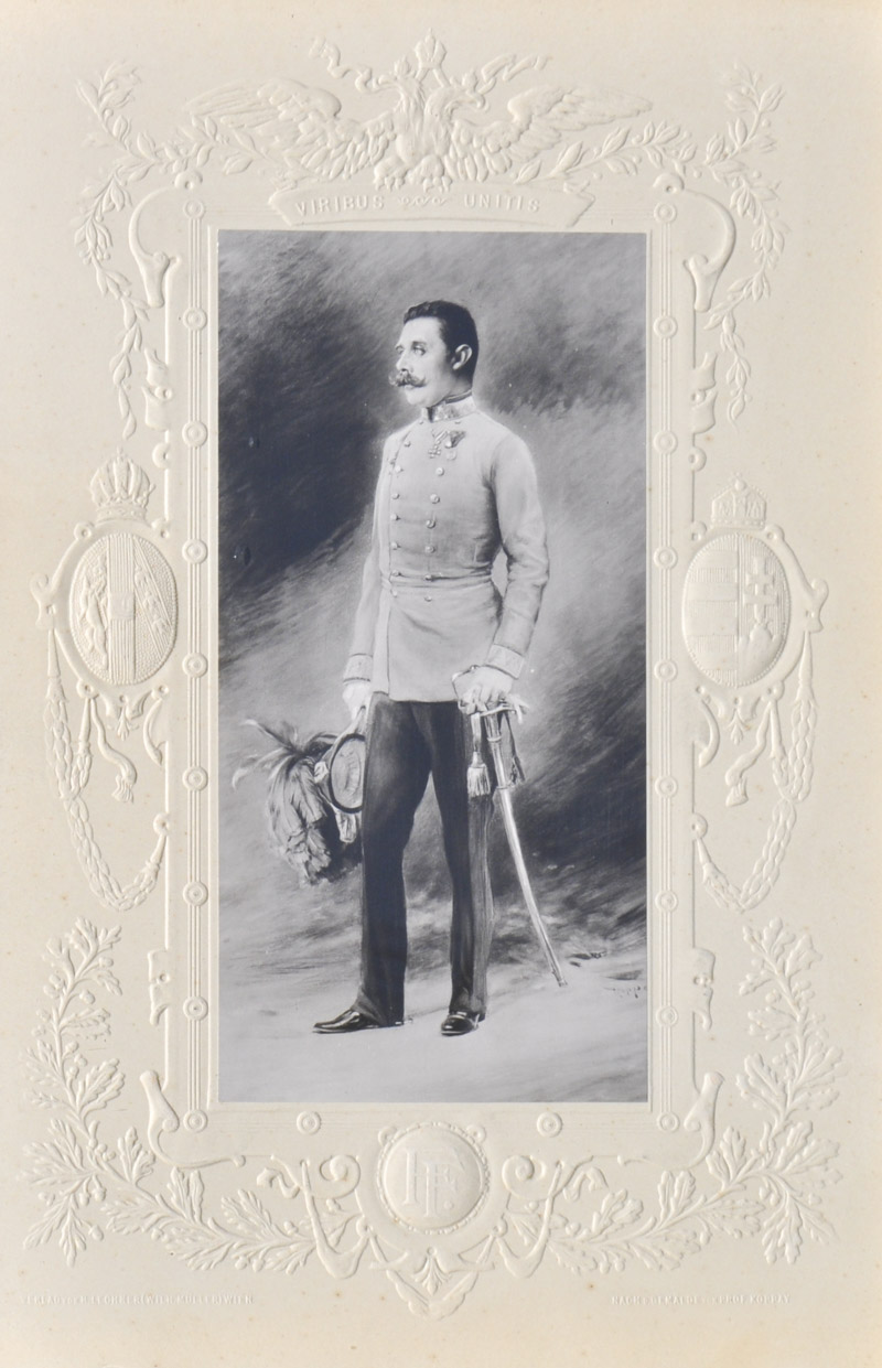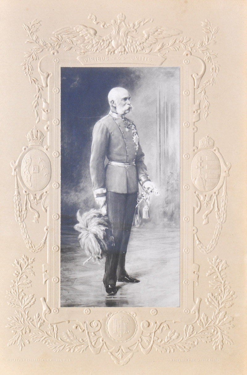 Anonym/Anomnimo Imperatore Francesco Giuseppe, e Francesco Ferdinando, 1910 ca.;2 fotografie basate su dipinti del prof. Koppay, con cornici