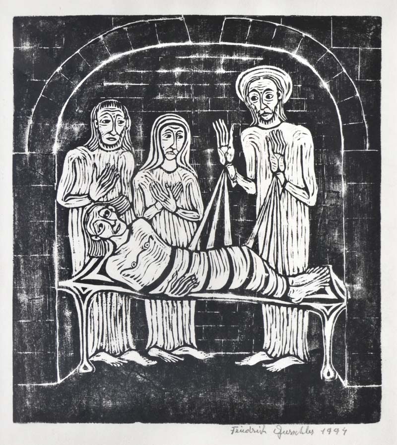 Friedrich Gurschler (Schnals/Senales 1923 – Meran/Merano 2020) Gesù resuscita Lazzaro, 1994;Xilografia, 34,5x 37,7 cm (immagine), in cornice