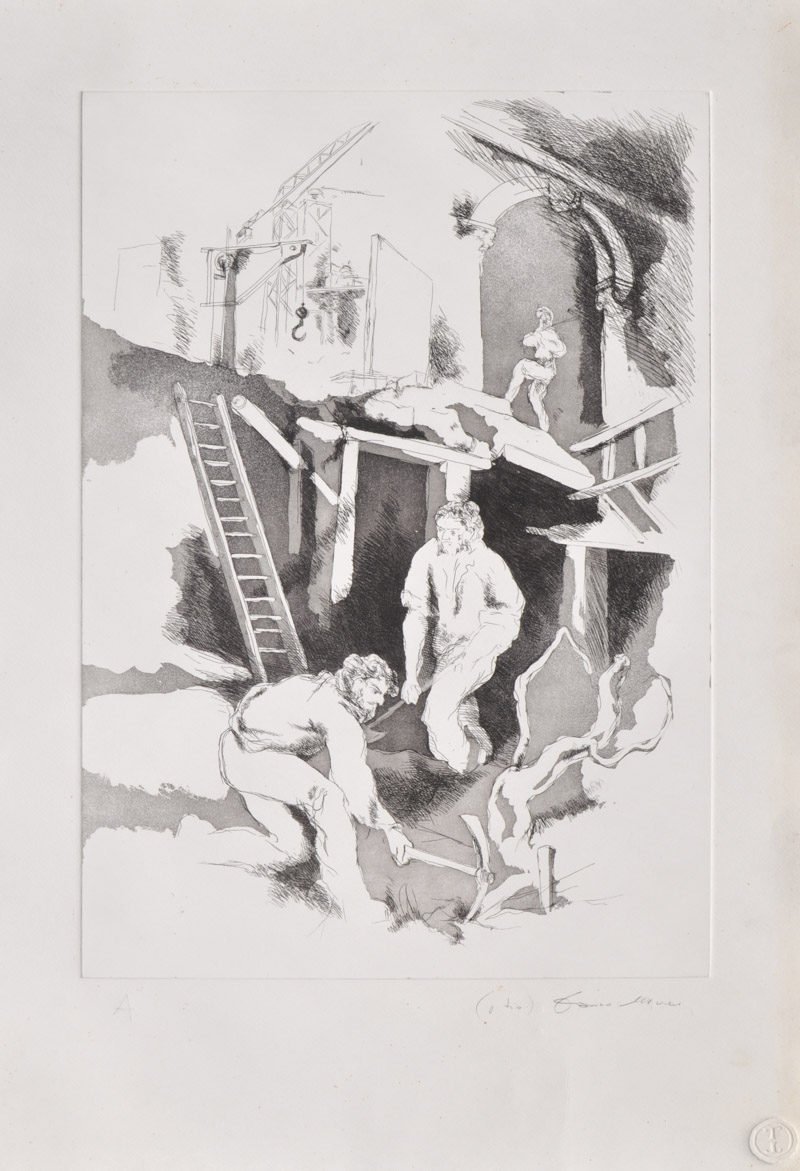 Franco Murer (* Falcade 1952) Operaio;Acquatinta, 48,5 x 34,5 cm (lastra)