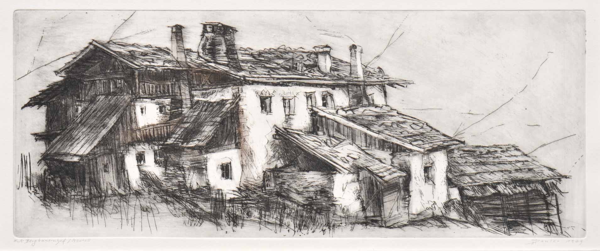 Herbert Danler (Fulpmes 1928 – Telfes im Stubai 2011) Maso a Martello, 1979;Acquaforte, 15,4 x 38,5 cm (lastra), 30 x 54 cm (foglio)