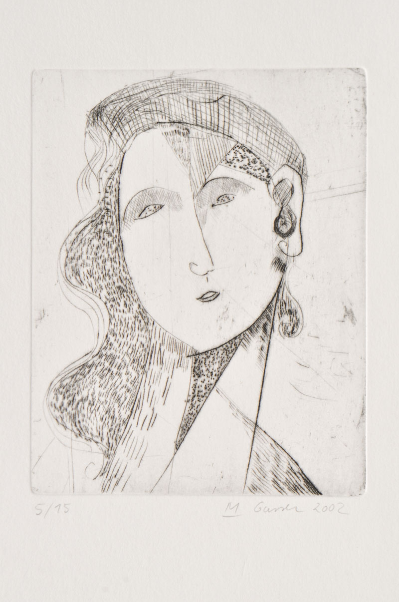 Markus Gasser (* Bozen/Bolzano 1970) Testa femminile, 2002;Acquaforte, 19,7 x 15,4 cm (lastra), 50 x 35,3 cm (foglio)